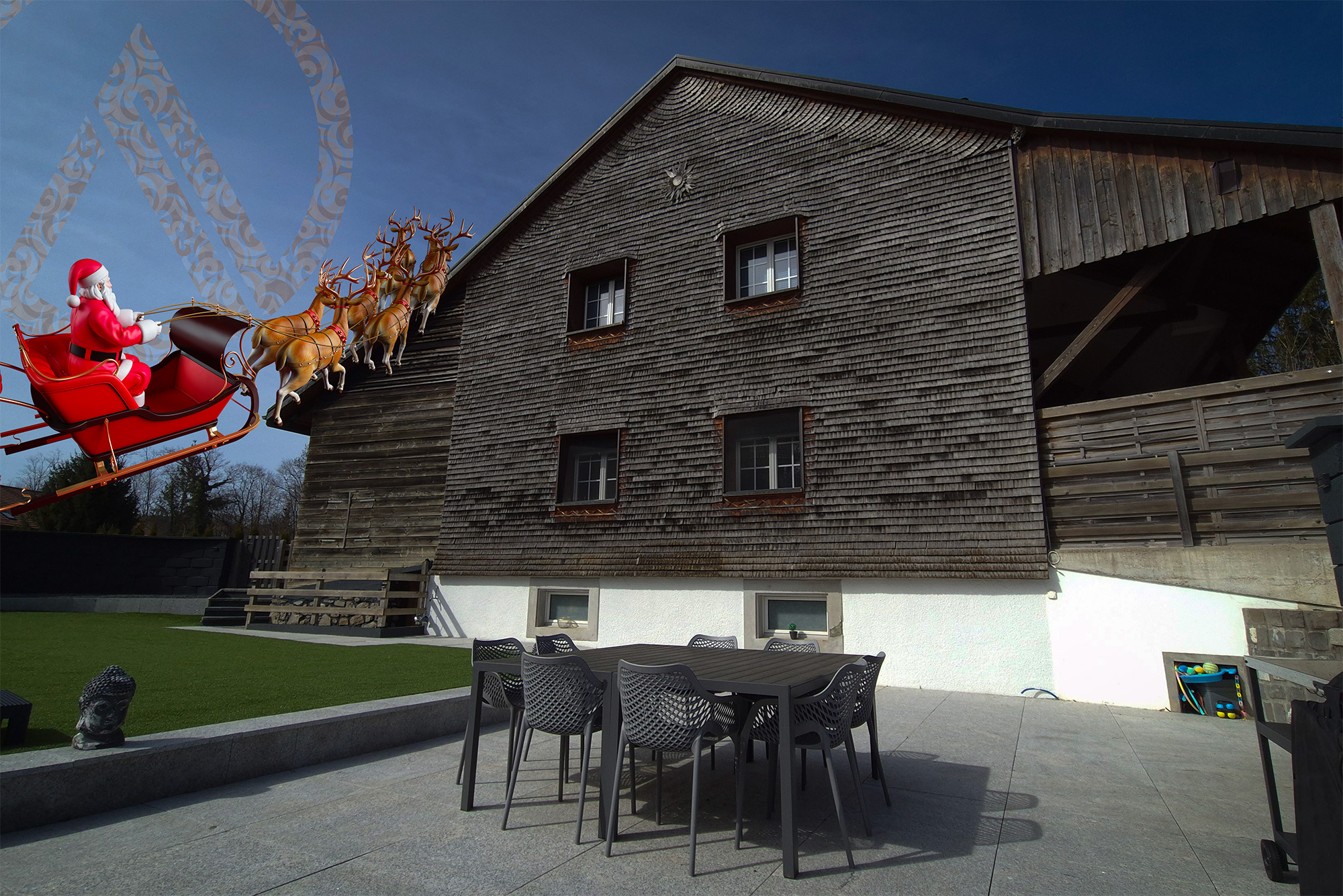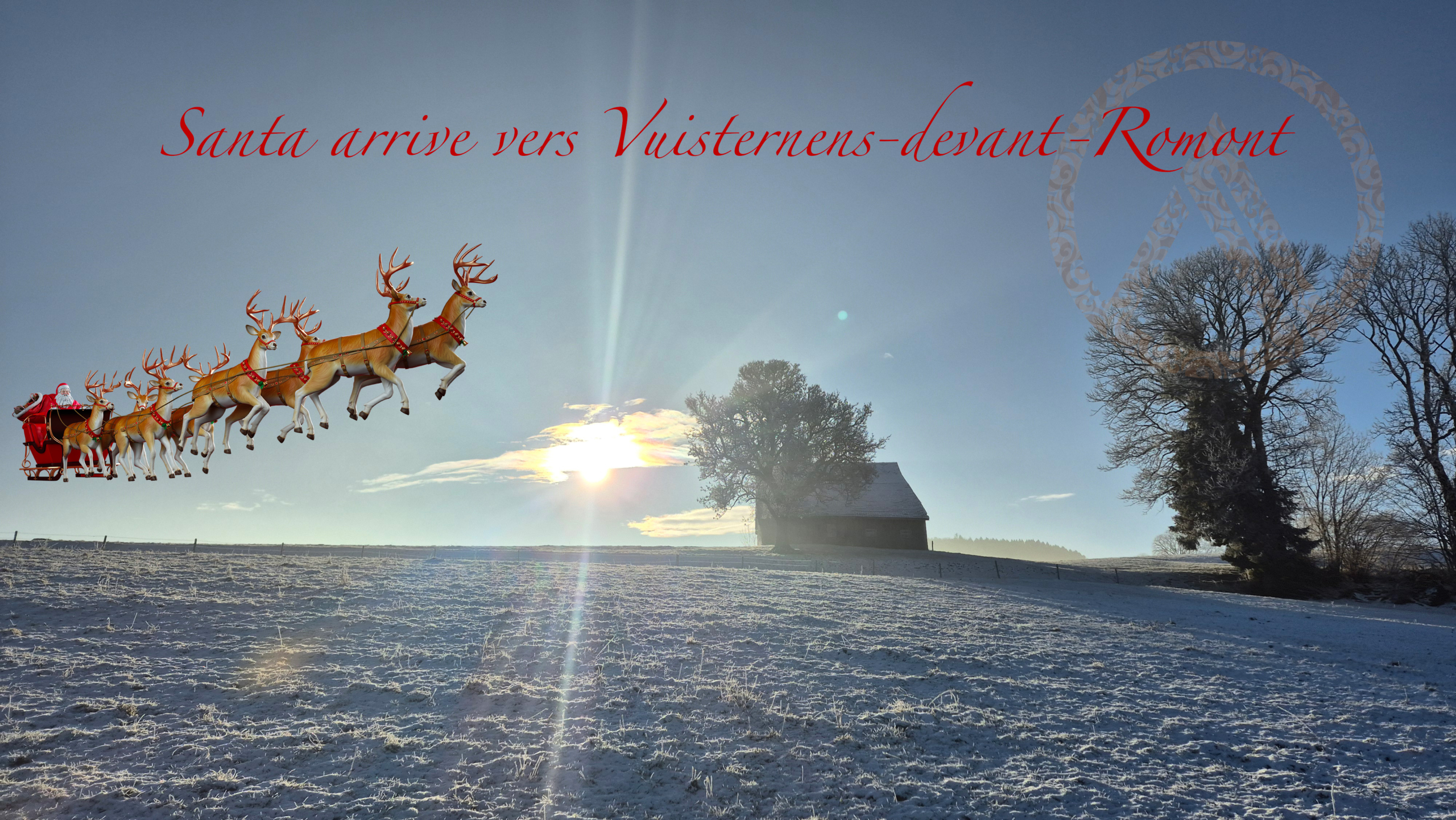 Un peu de mystère pour ce 20 décembre, Santa arrive avec ses rennes proche de Vuisternens-devant-Romont, devant cette belle villa de plain pied avec une vue superbe sur le Moléson enneigé...