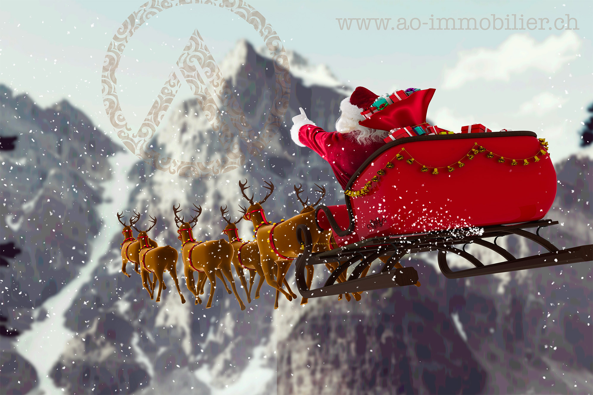Finalement Santa s'est décidé à poser son traineau avec la vue sur les Dents-du-midi à Ollon. Un arrêt tout en douceur dans le grand jardin... Découvrez tout le calendrier sur notre blog ici : https://ao-immobilier.ch/blog/