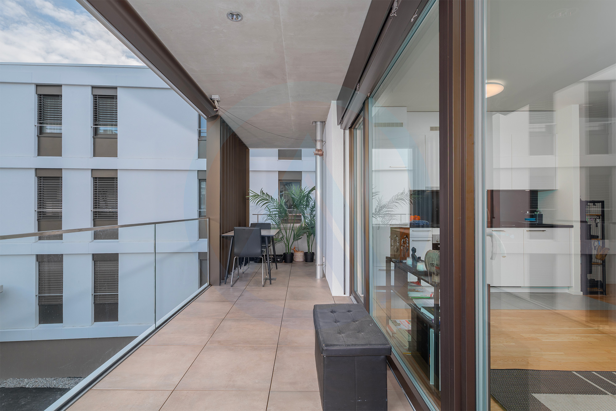 Très lumineux et facilement aménageable, il bénéficie d’un spacieux balcon couvert de 15 m² qui agrandit considérablement le logement.